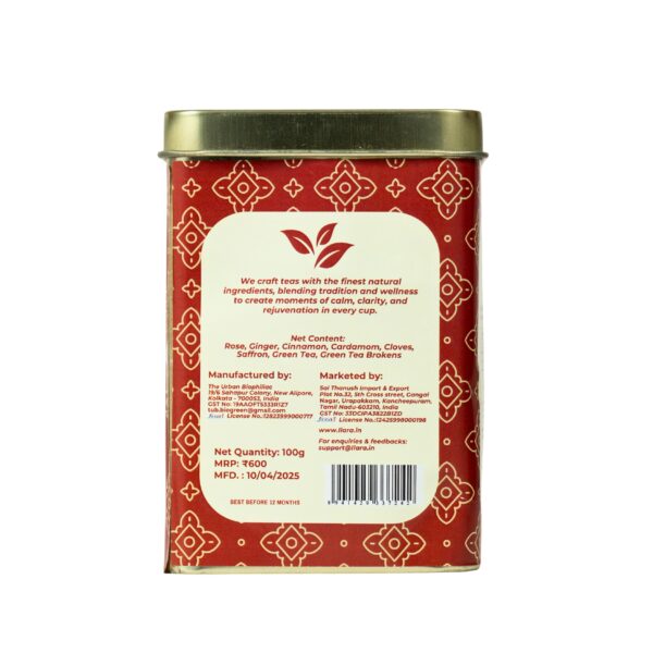 Introducing our Exquisite Herbal Infusion Blend, a unique combination of carefully selected ingredients designed to elevate your tea time experience. Embrace the harmonious flavors of Rose, Ginger, Cinnamon, Cardamom, Saffron, Cloves, and Green Tea – each one meticulously sourced to ensure the highest quality. This blend not only captivates with its aroma but also provides numerous health benefits.
